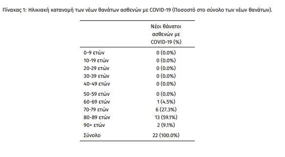 Οι νέοι θάνατοι ασθενών με COVID-19 είναι 22, ενώ από την έναρξη της επιδημίας έχουν καταγραφεί συνολικά 29.175 θάνατοι. Το 95.5% είχε υποκείμενο νόσημα ή/και ηλικία 70 ετών και άνω.