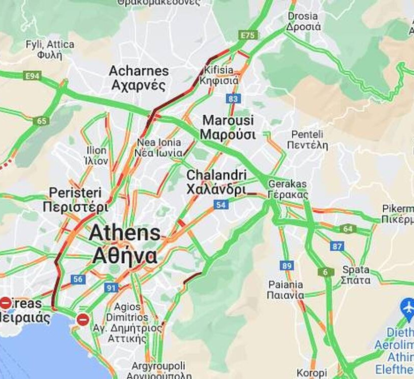 Κίνηση τώρα: Χάμός στην κάθοδο του Κηφισού - Μεγάλες καθυστερήσεις και στο κέντρο της Αθήνας