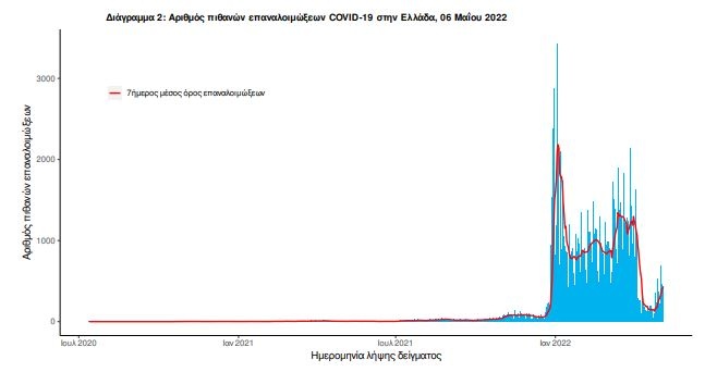 Ο αριθμός πιθανών νέων επαναλοιμώξεων που καταγράφηκαν τις τελευταίες 24 ώρες ήταν 469 ενώ από την αρχή της πανδημίας SARS-CoV-2 ο συνολικός αριθμός εκτιμάται σε 125.291(3.6% του συνολικού αριθμού των θετικών αποτελεσμάτων. Οι νέοι θάνατοι ασθενών με COVID-19 είναι 33, ενώ από την έναρξη της επιδημίας έχουν καταγραφεί συνολικά 29.349 θάνατοι.