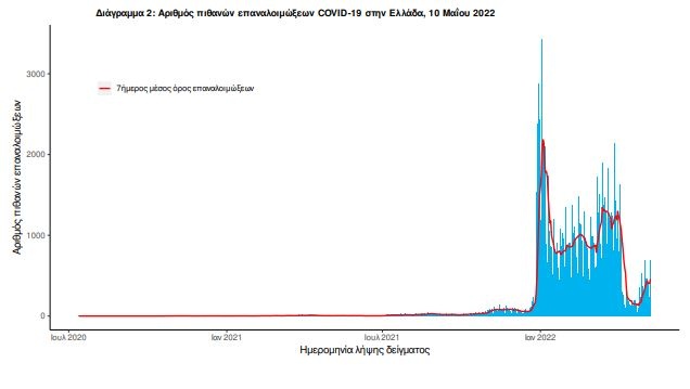 Στο Διάγραμμα 2 παρουσιάζεται ο αριθμός των επαναλοιμώξεων ανά ημερομηνία λήψης δείγματος και ο 7ήμερος κυλιόμενος μέσος όρος των επαναλοιμώξεων.