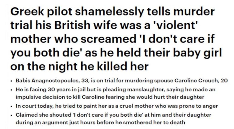Η δίκη του Μπάμπη Αναγνωστόπουλου για τη δολοφονία της Καρολάιν Κράουτς, έχει γίνει πρώτο θέμα στη Βρετανία και η Daily Mail εξαπέλυσε δριμεία επίθεση κατά του δολοφόνου και συζύγου της 19χρονης.