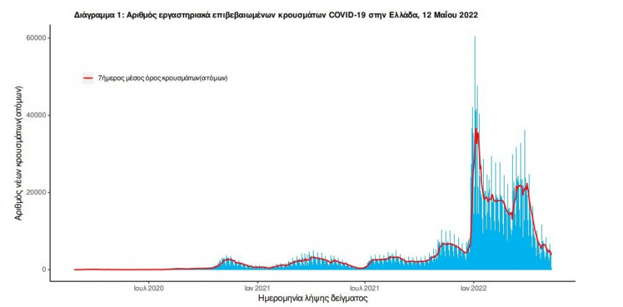 Τα στοιχεία που παρουσιάζονται αφορούν περιστατικά από την επιδημιολογική επιτήρηση της νόσου από το νέο κορονοϊό (COVID-19), με βάση τα δεδομένα που έχουν δηλωθεί στον ΕΟΔΥ και καταγραφεί μέχρι τις 12 Μαΐου 2022 (ώρα 09:00).