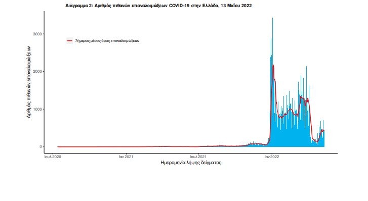 Ο αριθμός πιθανών νέων επαναλοιμώξεων που καταγράφηκαν τις τελευταίες 24 ώρες ήταν 439 ενώ από την αρχή της πανδημίας SARS-CoV-2 ο συνολικός αριθμός εκτιμάται σε 128.319(3.7% του συνολικού αριθμού των θετικών αποτελεσμάτων).