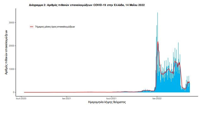 Ο αριθμός πιθανών νέων επαναλοιμώξεων που καταγράφηκαν τις τελευταίες 24 ώρες ήταν 407 ενώ από την αρχή της πανδημίας SARS-CoV-2 ο συνολικός αριθμός εκτιμάται σε 128.726 (3.7% του συνολικού αριθμού των θετικών αποτελεσμάτων).