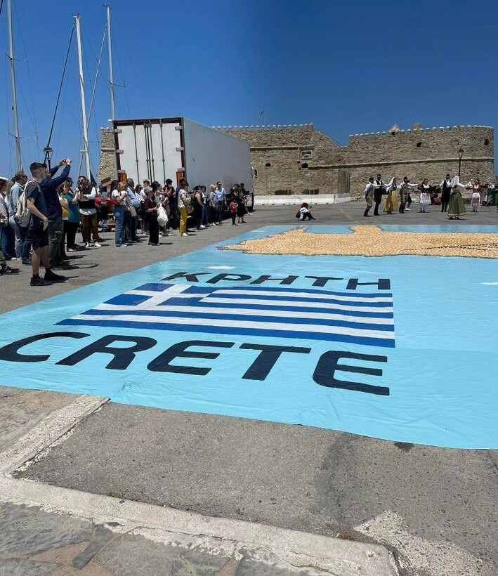 Τον πιο γλυκό χάρτης της Κρήτης, από 37.531 παραδοσιακά καλιτσούνια -γνωστά και ως «λυχναράκι»- έφτιαξαν το πρωί του Σαββάτου (14/5), στο ενετικό λιμάνι του Ηρακλείου.