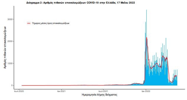 Στο Διάγραμμα 2 παρουσιάζεται ο αριθμός των επαναλοιμώξεων ανά ημερομηνία λήψης δείγματος και ο 7ήμερος κυλιόμενος μέσος όρος των επαναλοιμώξεων.