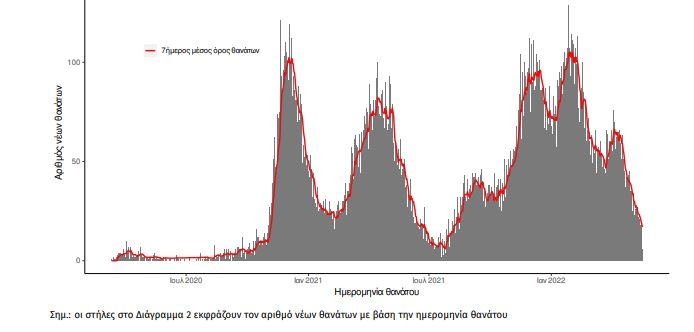 Οι νέοι θάνατοι ασθενών με COVID-19 είναι 19, ενώ από την έναρξη της επιδημίας έχουν καταγραφεί συνολικά 29.619 θάνατοι. Το 95.6% είχε υποκείμενο νόσημα ή/και ηλικία 70 ετών και άνω.