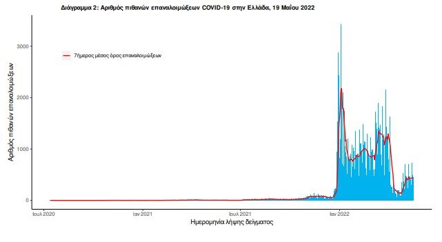 Στο Διάγραμμα 2 παρουσιάζεται ο αριθμός των επαναλοιμώξεων ανά ημερομηνία λήψης δείγματος και ο 7ήμερος κυλιόμενος μέσος όρος των επαναλοιμώξεων.