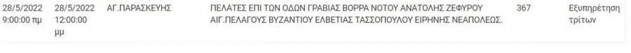Προκειμένου να προγραμματίσετε τις εργασίες σας και να ελαχιστοποιηθεί η όχλησή σας, στον ακόλουθο πίνακα, μπορείτε να ενημερωθείτε για τις περιοχές και τις ώρες προγραμματισμένων διακοπών ηλεκτροδότησης» αναφέρει η ΔΕΔΔΗΕ.