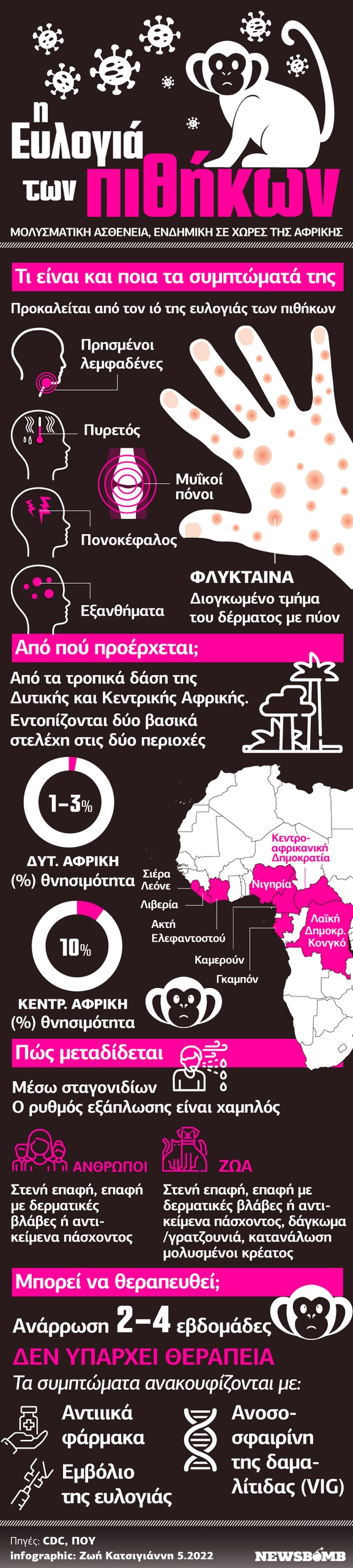 Αξίζει να σημειωθεί ότι οι υγειονομικές αρχές ανά τον πλανήτη διερευνούν την εξάπλωση της ευλογιάς των πιθήκων, μιας σπάνιας ιογενούς ασθένειας που μέχρι σήμερα εντοπιζόταν σχεδόν αποκλειστικά σε απομακρυσμένες περιοχές της Κεντρικής και Δυτικής Αφρικής.