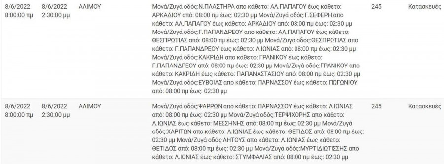 Προκειμένου να προγραμματίσετε τις εργασίες σας και να ελαχιστοποιηθεί η όχλησή σας, στον ακόλουθο πίνακα, μπορείτε να ενημερωθείτε για τις περιοχές και τις ώρες προγραμματισμένων διακοπών ηλεκτροδότησης» αναφέρει ο ΔΕΔΔΗΕ.