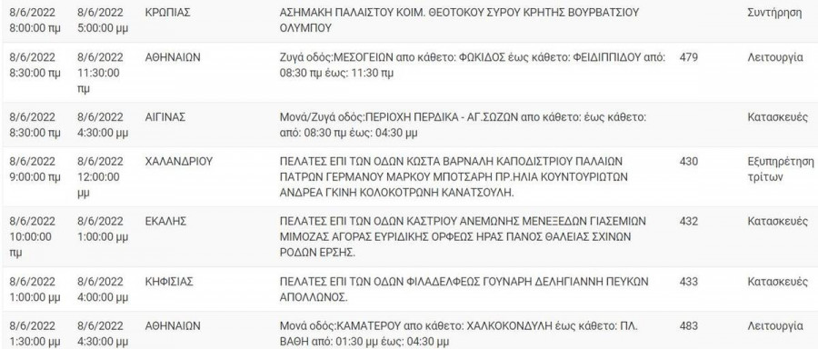 Διακοπές ρεύματος σήμερα Τετάρτη (8/6) στην Αττική - Δείτε σε ποιες περιοχές
