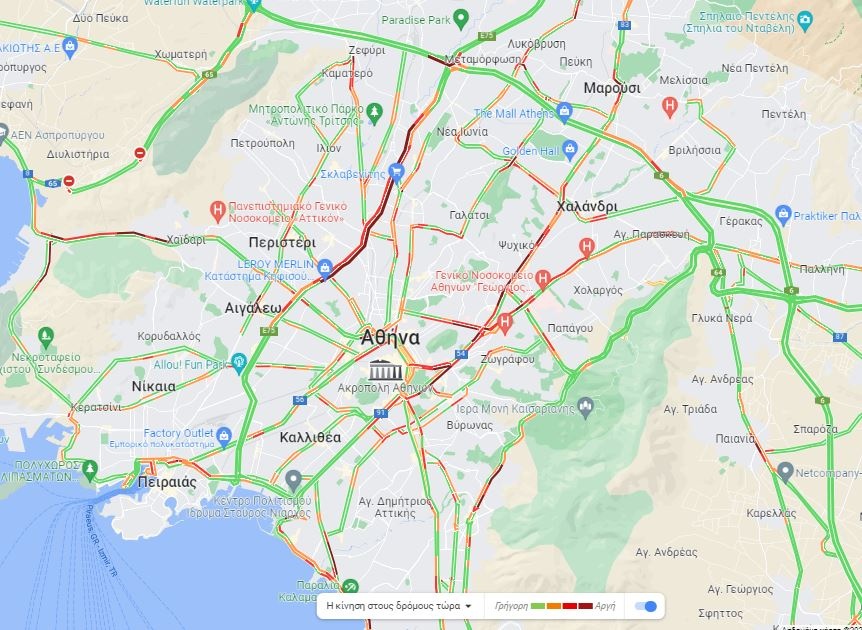 Αυξημένη κίνηση στην κάθοδο της Κηφισίας προς το κέντρο της Αθήνας αλλά και στην κάθοδο της Μεσογείων. Δυσκολίες στην κίνηση και στον Καρέα στο ρεύμα προς Κατεχάκη αλλά και στο λιμάνι του Πειραιά.