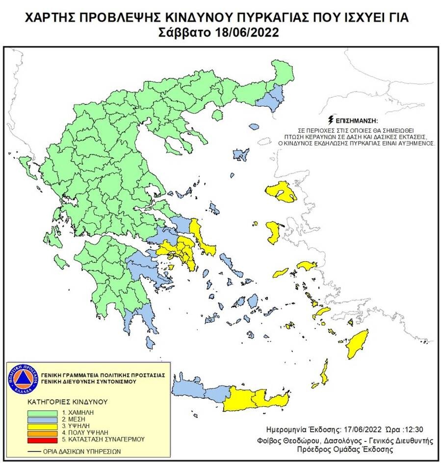 Ο κίνδυνος είναι ιδιαίτερα υψηλός. Ο αριθμός των πυρκαγιών που αναμένεται να εκδηλωθούν, πιθανόν να είναι μεγάλος αλλά, το κυριότερο, κάθε πυρκαγιά μπορεί να λάβει μεγάλες διαστάσεις εφόσον ξεφύγει από την αρχική προσβολή.