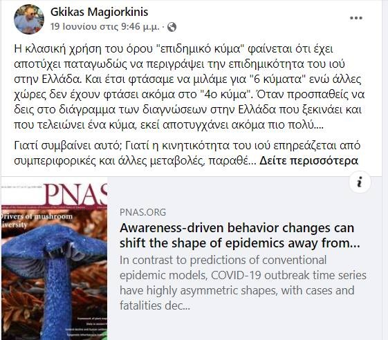 Από την άλλη ο καθηγητής, επικεφαλής του κλάδου εμβολίων του Εθνικού Ινστιτούτου για τον Καρκίνο των ΗΠΑ, κ. Γιώργος Παυλάκης, σχολιάζοντας το κατά πόσο είμαστε μπροστά σε ένα κύμα ή μία ταλάντωση προχώρησε σε μία αιχμηρή ανάρτηση που φαίνεται να αφορά τον κ. Μαγιορκίνη, αν και δεν τον κατονομάζει.