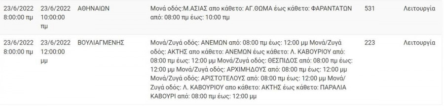 Διακοπές ρεύματος θα πραγματοποιηθούν την Πέμπτη 23 Ιουνίου, σε περιοχές της Αττικής, σύμφωνα με ανακοίνωση του ΔΕΔΔΗΕ