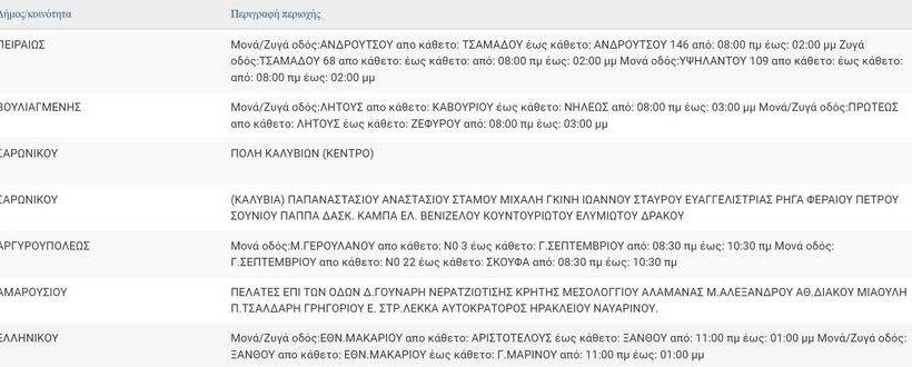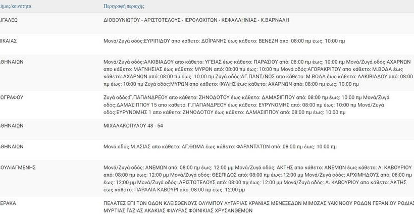 Από ημ/νία και ώρα | Έως ημ/νία και ώρα | Δήμος/κοινότητα | Περιγραφή περιοχής |