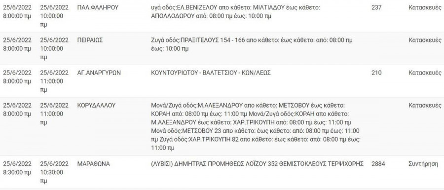 Διακοπές ρεύματος θα πραγματοποιηθούν το Σάββατο 25 Ιουνίου, σε περιοχές της Αττικής, σύμφωνα με ανακοίνωση του ΔΕΔΔΗΕ