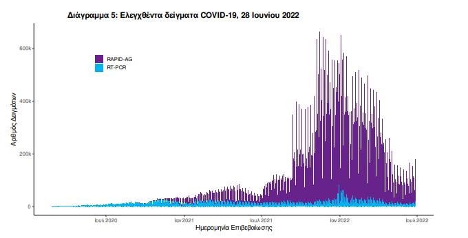 Mαζικές Δειγματοληψίες ΕΟΔΥ: Στις 27 Ιουνίου 2022, πραγματοποιήθηκαν 176 δράσεις δειγματοληπτικών ελέγχων από τις Κινητές Ομάδες Υγείας (ΚΟΜΥ) του ΕΟΔΥ, στις οποίες διενεργήθηκαν 16.349 έλεγχοι Rapid Ag και ανευρέθηκαν 3.022 θετικά (18.48%).