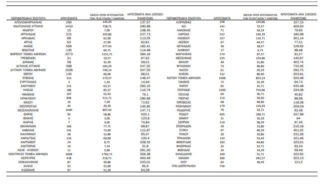 Κατανομή ανακοινωθέντων εγχώριων κρουσμάτων: Από το σύνολο των 23.748 νέων κρουσμάτων του νέου ιού στη χώρα 2 είναι εισαγόμενα. Η κατανομή των 23.746 νέων εγχώριων κρουσμάτων ανά Περιφερειακή Ενότητα παρουσιάζεται στον κατωτέρω πίνακα.