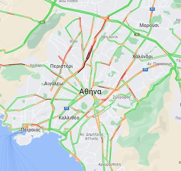 Κυκλοφοριακά προβλήματα υπάρχουν και στην κάθοδο από το ύψος της Αττικής Οδού μέχρι το Αιγάλεω.