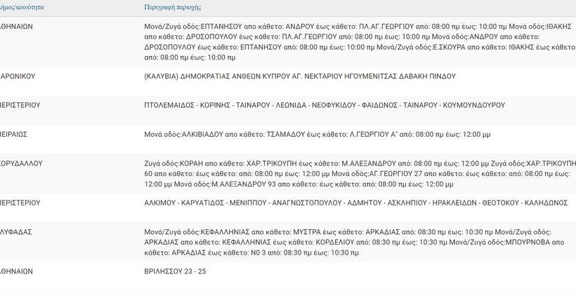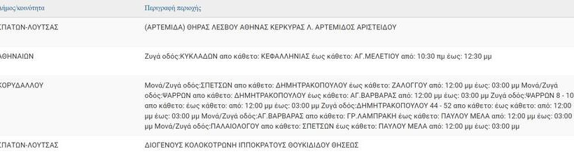 Από ημ/νία και ώρα | Έως ημ/νία και ώρα | Δήμος/κοινότητα | Περιγραφή περιοχής |