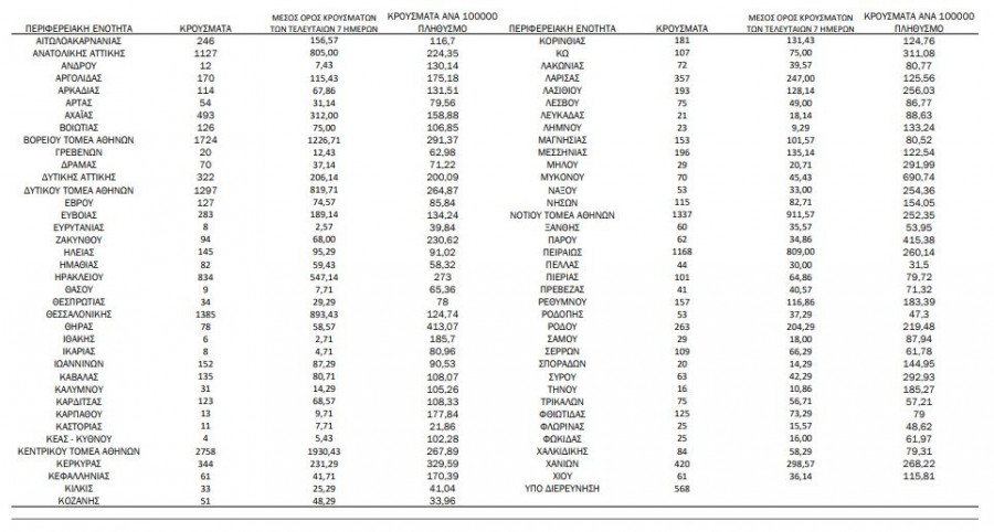 Στο ίδιο πλαίσιο προβληματισμό προκαλεί το γεγονός ότι ο δείκτης μεταδοτικότητας Rt για την επικράτεια βάσει των κρουσμάτων εκτιμάται σε 1,35 ενώ σε ορισμένε περιοχές έχει φτάσει ακόμα και το 1,52.