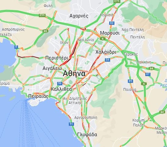Προβλήματα υπάρχουν στους δρόμους γύρω από το κέντρο της Αθήνας και του Πειραιά, στη Λεωφόρο Κηφισίας και στη Λεωφόρο Ποσειδώνος στο ρεύμα προς Γλυφάδα.