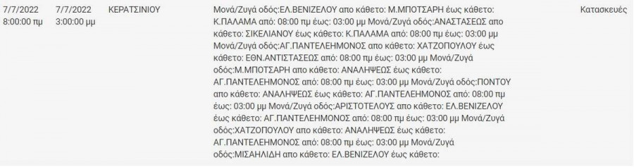 Προκειμένου να προγραμματίσετε τις εργασίες σας και να ελαχιστοποιηθεί η όχλησή σας, στον ακόλουθο πίνακα, μπορείτε να ενημερωθείτε για τις περιοχές και τις ώρες προγραμματισμένων διακοπών ηλεκτροδότησης» αναφέρει ο ΔΕΔΔΗΕ.