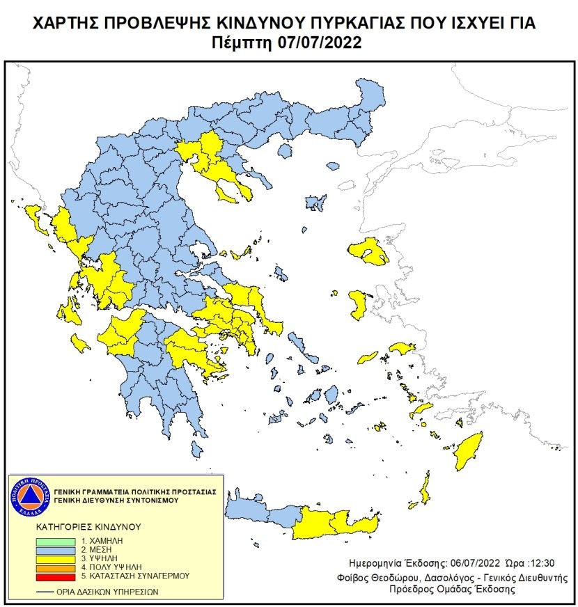 Ο χάρτης πρόβλεψης κινδύνου πυρκαγιάς για την Πέμπτη 7 Ιουλίου
