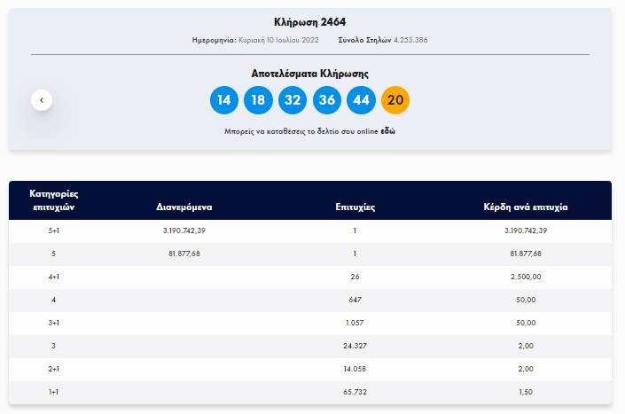 Τζόκερ κλήρωση (10/7/2022): Ένας υπερτυχερός κέρδισε 3,1 εκατ. ευρώ