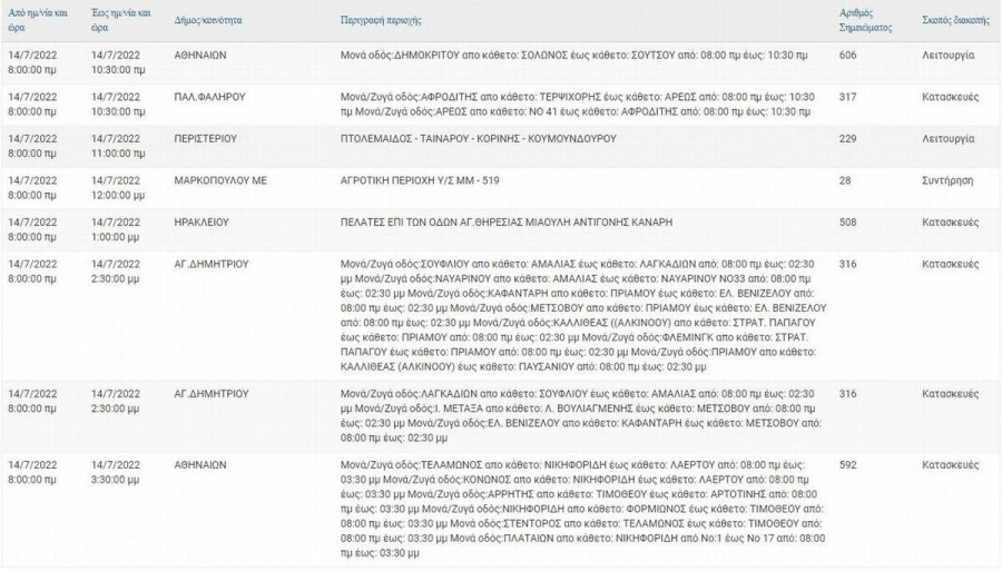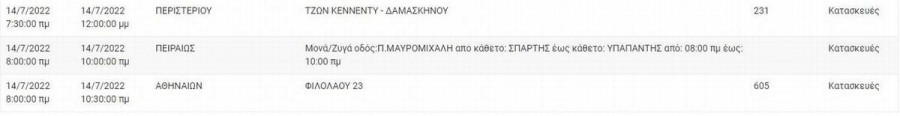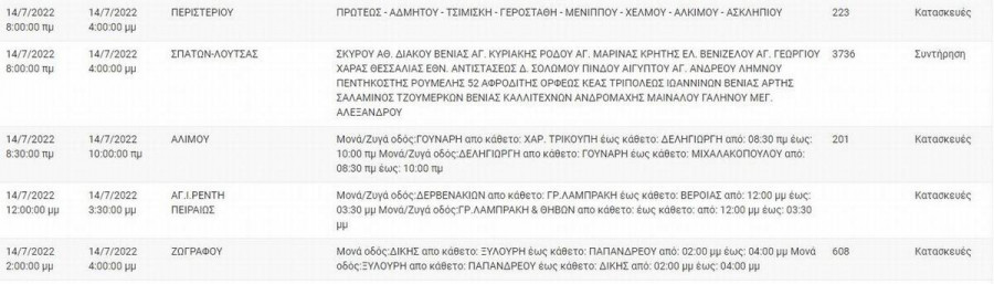 Αναλυτικά οι ώρες και οι περιοχές.