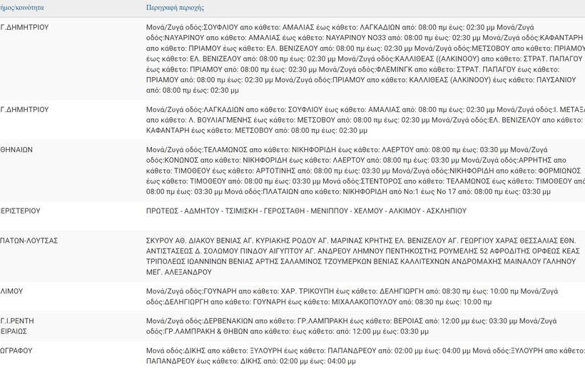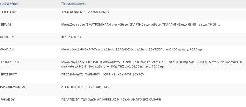 Από ημ/νία και ώρα | Έως ημ/νία και ώρα | Δήμος/κοινότητα | Περιγραφή περιοχής |