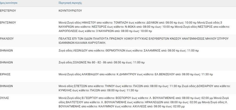 Από ημ/νία και ώρα | Έως ημ/νία και ώρα | Δήμος/κοινότητα | Περιγραφή περιοχής |