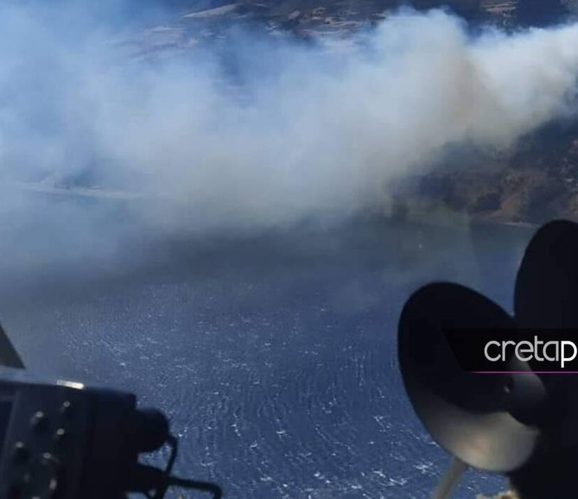 Πυροσβεστικές και αστυνομικές δυνάμεις από όλη την Κρήτη, με τη βοήθεια εθελοντών και του ΟΤΑ που διαθέτουν οχήματα, υδροφόρες και μηχανήματα, συνδράμουν στην προσπάθεια ελέγχου και κατάσβεσης των μεγάλων πυρκαγιών στον νομό.