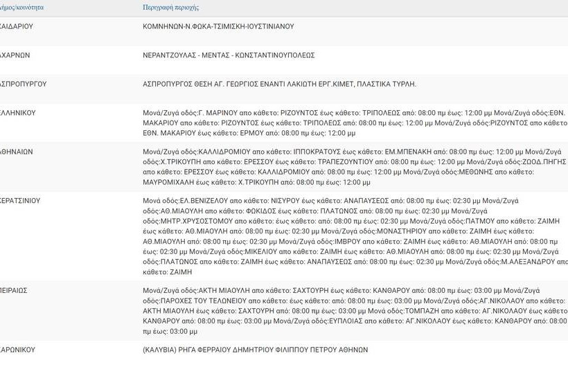 Δείτε στον πίνακα του newsbomb.gr, τις περιοχές της Αττικής και τις ώρες που θα σημειωθεί διακοπή ρεύματος: