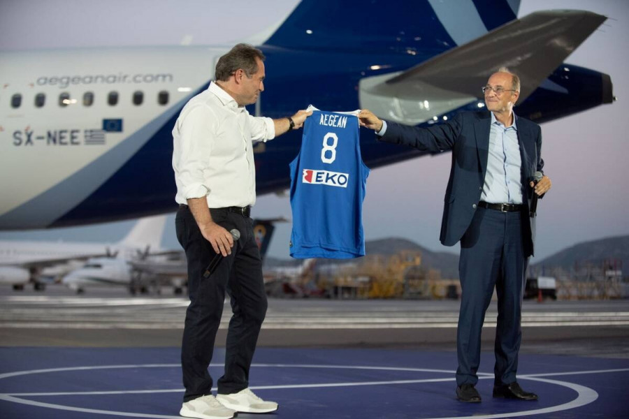 Η ανανέωση της χορηγικής συνεργασίας μεταξύ της AEGEAN και της Ελληνικής Ομοσπονδίας Καλαθοσφαίρισης για 8η συνεχομένη χρονιά καθώς και το αεροπλάνο της εθνικής με τα πρόσωπα των παικτών να κοσμούν στο εξής το εξωτερικό του αεροσκάφους, παρουσιάστηκαν από τον Πρόεδρο της AEGEAN κ. Ευτύχιο Βασιλάκη και τον Πρόεδρο της ΕΟΚ κ. Ευάγγελο Λιόλιο σε ειδική εκδήλωση που πραγματοποιήθηκε στην τεχνική βάση της εταιρείας. Ταυτόχρονα, ανακοινώθηκε η μετονομασία του δημοφιλούς τουρνουά προετοιμασίας «Ακρόπολις» σε τουρνουά «AEGEAN Ακρόπολις» και θα πραγματοποιηθεί στην Αθήνα 17-19 Αυγούστου, σηματοδοτώντας το ξεκίνημα του ταξιδιού της εθνικής μας για τη μεγαλύτερη διοργάνωση μπάσκετ της Ευρώπης.