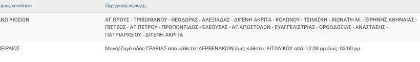 Από ημ/νία και ώρα | Έως ημ/νία και ώρα | Δήμος/κοινότητα | Περιγραφή περιοχής |