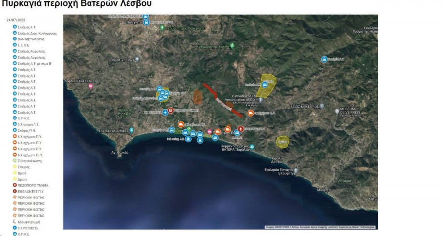 Ευρείας κλίμακας αστυνομική επιχείρηση με τη συμμετοχή αστυνομικών της Γενικής Περιφερειακής Αστυνομικής Διεύθυνσης Βορείου Αιγαίου και της Διεύθυνσης Αστυνομίας Λέσβου, πραγματοποιήθηκε στο πλαίσιο του επιχειρησιακού σχεδιασμού για την αντιμετώπιση της πυρκαγιάς στην ευρύτερη περιοχή των Βατερών και του Πολιχνίτου στη Λέσβο.