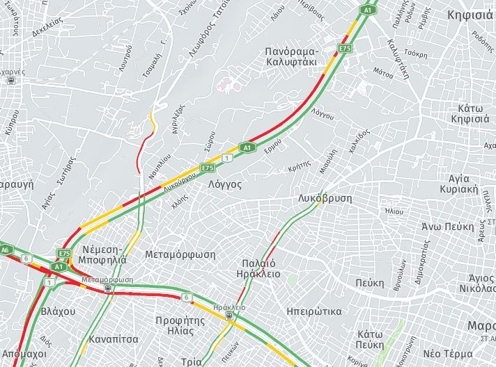 Την ίδια ώρα, μποτιλιάρισμα σημειώνεται στον Κηφισό, και στα δύο ρεύματα, στη Μεσογείων, στην Κατεχάκη (ρεύμα από Ηλιούπολη), στη Λ. Συγγρού (στην άνοδο), στη Λ. Κηφισίας και στα δύο ρεύματα, στη Σταδίου καθώς και στη Βασ. Αμαλίας.