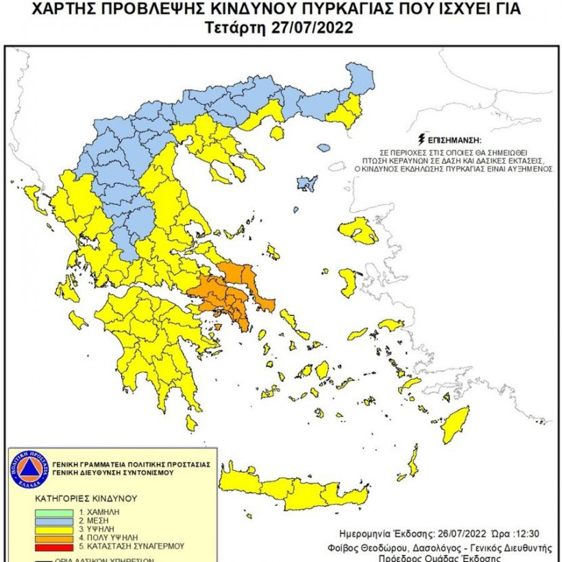Δείτε στο χάρτη, τις περιοχές που αντιμετωπίζουν υψηλό κίνδυνο σήμερα Τετάρτη, 27 Ιουλίου