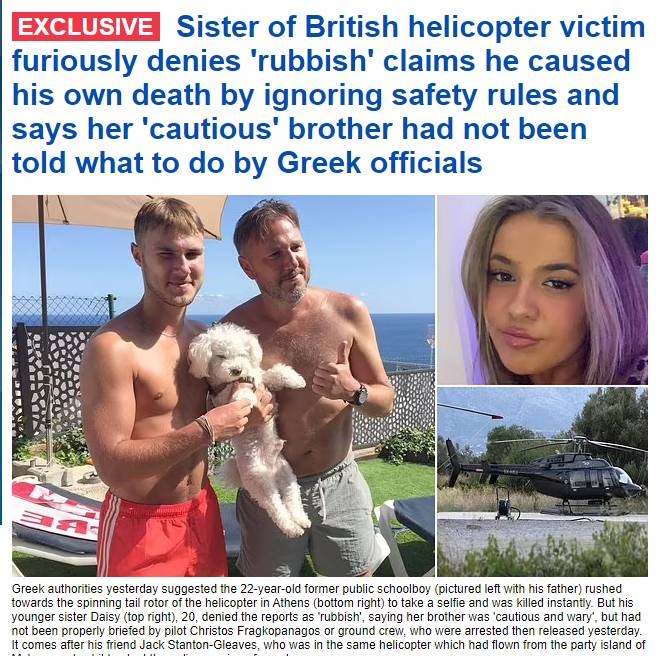 Την ίδια στιγμή τα βρετανικά ΜΜΕ έχουν εκτεταμένα ρεπορτάζ για το δυστύχημα κάνοντας λόγο για ερωτήματα που γεννιούνται για τη στιγμή που ο 22χρονος Βρετανός επιβάτης ελικοπτέρου διαμελίστηκε από τον πίσω έλικα, αμέσως μετά την αποβίβασή του.