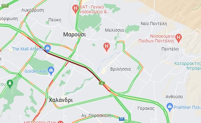 Λόγω του ατυχήματος παρατηρούνται μεγάλες καθυστερήσεις από το ύψος του Αμαρουσίου μέχρι και την Αγία Παρασκευή.