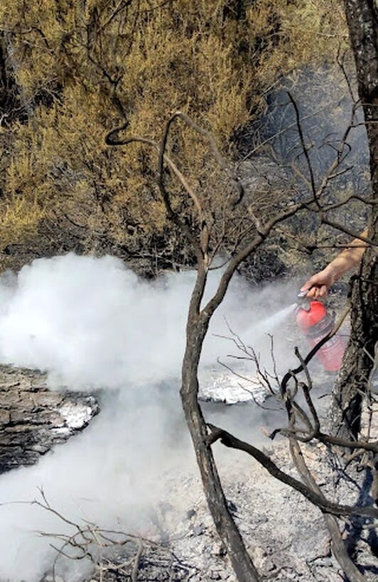 16 υπεράνθρωποι, 6 οργανωμένες αποστολές, 4369 στρέμματα κάλυψης, 15 κατασβέσεις μικροεστιών, 12 διασώσεις ζώων, πάνω από 100 παρατηρήσεις υγιών πτηνών, πάνω από 50 παρατηρήσεις υγιών ερπετών και αμφίβιων, 12 παρατηρήσεις υγιών θηλαστικών (ζαρκάδια, λαγοί), δυστυχώς πάνω από 30 καμένες χελώνες και άλλα ερπετά και, τέλος, 420 λίτρα απορριμμάτων που συνελέγησαν από τα σημεία κατάσβεσης είναι οι αριθμοί που αποτυπώνουν την προσπάθεια της ομάδας στο πεδίο.
