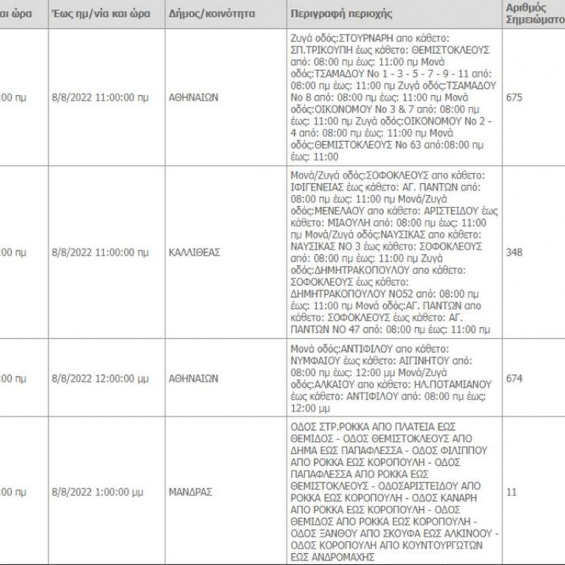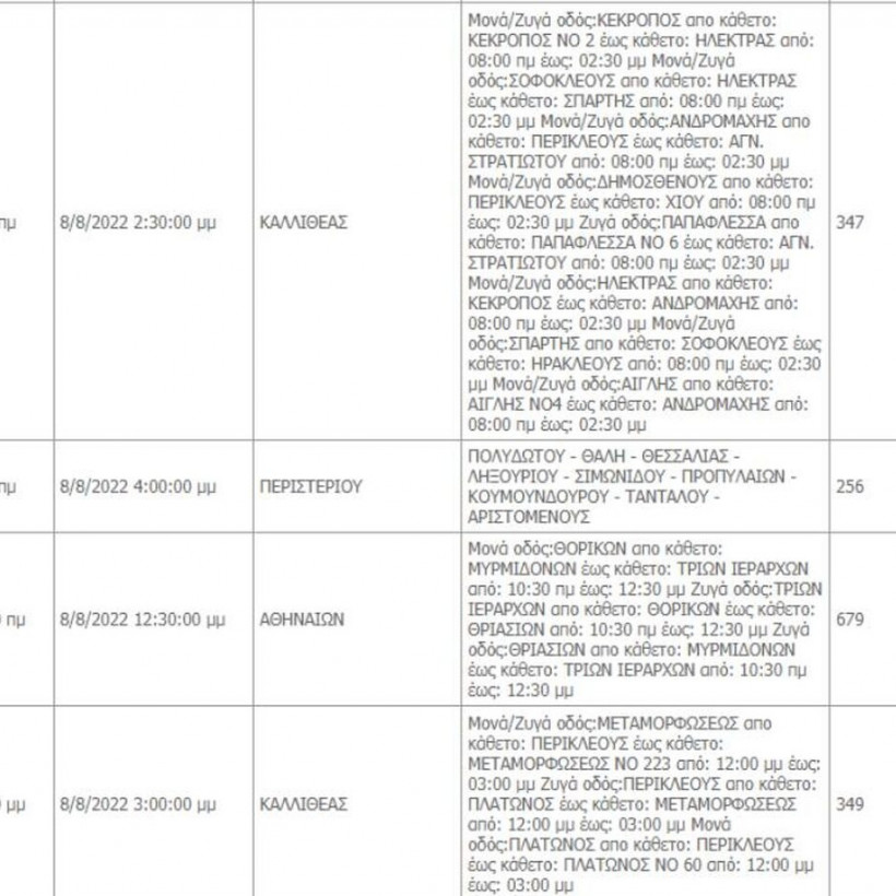Σύμφωνα με τον ΔΕΔΔΗΕ, διακοπές θα υπάρξουν σε περιοχές της Καλλιθέας, της Μάνδρας, του Περιστερίου και της Αθήνας.