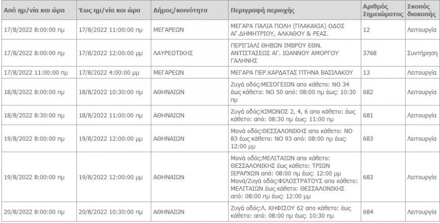 Οι διακοπές ρεύματος στην Αττική τα επόμενα 24ωρα