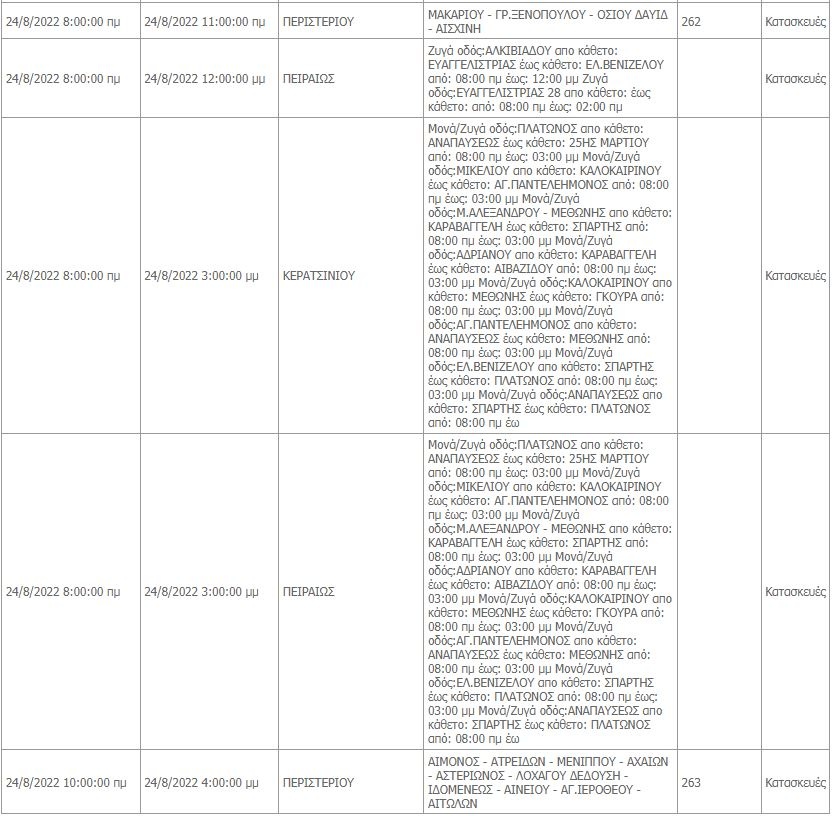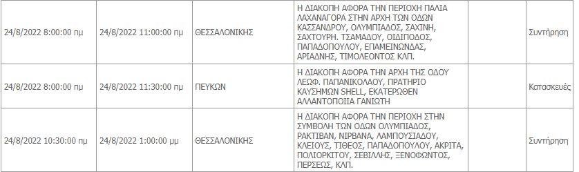 Διακοπές ρεύματος σύμφωνα με τις ανακοινώσεις του ΔΕΔΔΗΕ θα πραγματοποιηθούν την Τετάρτη 24 Αυγούστου, σε περιοχές της Αττικής και της Θεσσαλονίκης.