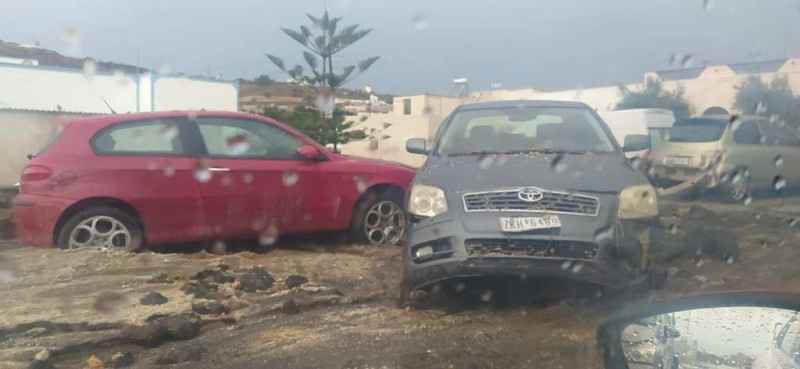 Πλημμυρικά φαινόμενα σημειώθηκαν και στο νησί της Τήνου όπου τα σοκάκια του νησιού πλημμύρισαν από την σφοδρή καταιγίδα που χτύπησε.