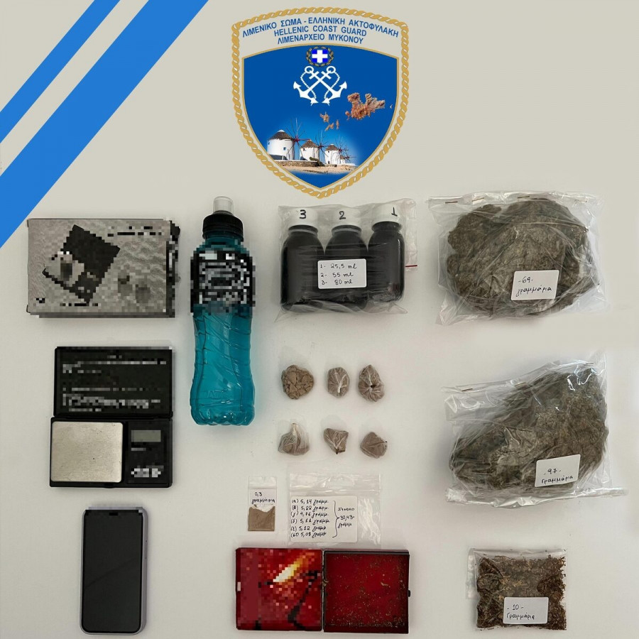 Συγκεκριμένα, σε νομότυπη έρευνα κατά τον κατάπλου του Ε/Γ-Ο/Χ-Τ/Χ πλοίου στο νέο λιμένα ν. Μυκόνου, διαπιστώθηκε ότι ο 63χρονος, κατείχε τα κάτωθι: