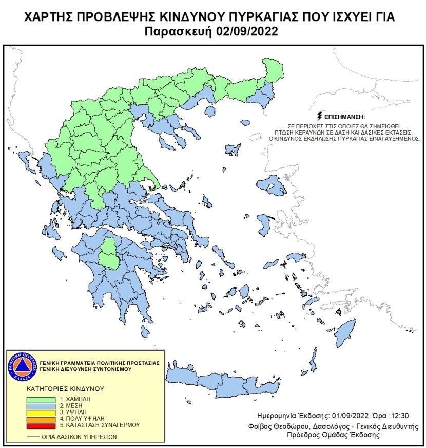 Σύμφωνα με την Πολιτική Προστασία για αύριο Τρίτη 2 Σεπτεμβρίου 2022, αναμένεται μεσαίος κίνδυνος πυρκαγιάς σε αρκετές περιοχές της χώρας κυρίως στην Κεντρική και Βόρεια Ελλάδα.